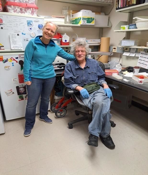 Paul's perspective on life carries him along effortlessly through his own hardship, sharing his infectious humor radiating positive vibes with a kind-hearted spirit. Paul takes such pride in his work at UWBC that brings purpose to his life! "There is life after accidents!" It will be thirty-two years this spring since Paul was hit by a car. Paul went on to share that he knows death after spending six weeks in a coma told he would never walk again. Paul beat those odds in spades. He walks and lives by himself with help from amazing people like Mattie Milz (Work Plus, Inc.) that give him "one more reason to get up in the morning." He worked the entire time he was interviewed on his invaluable role of preparing Outreach supplies for the K-12 students that visit our Outreach Lab that includes - DNA, soap, and wheat germ tubes. Paul wanted a few more tasks so Liz Jesse, UWBC Outreach Lead, and Tom Zinnen, UWBC Outreach Program Associate Director (retired), the talented tag team who shared the education outreach program, added in a recycling of lab supplies. Liz highlighted that she gets to enjoy Paul's curated music playlist as he works, which Paul obtained his appreciation of music being the second youngest of seven children. His older sister liked the Beatles and his enjoyment of Music branched out to included his favorites of: Richie Lee Johns, Mariah Carey, Steely Dan, Lucinda Williams, Melissa Etheridge, and Eric Clapton.